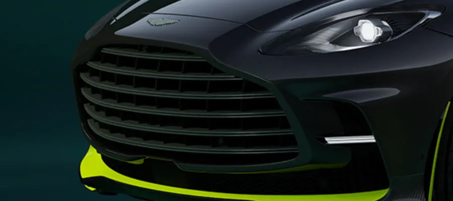 Once seen, never forgotten. DBX707 announces itself with the dramatic, double-vaned front grille. A declaration of presence, undimmed by horizontal daytime running lights, and drawing even more gasps from brake cooling ducts that sharpen its smile even further.