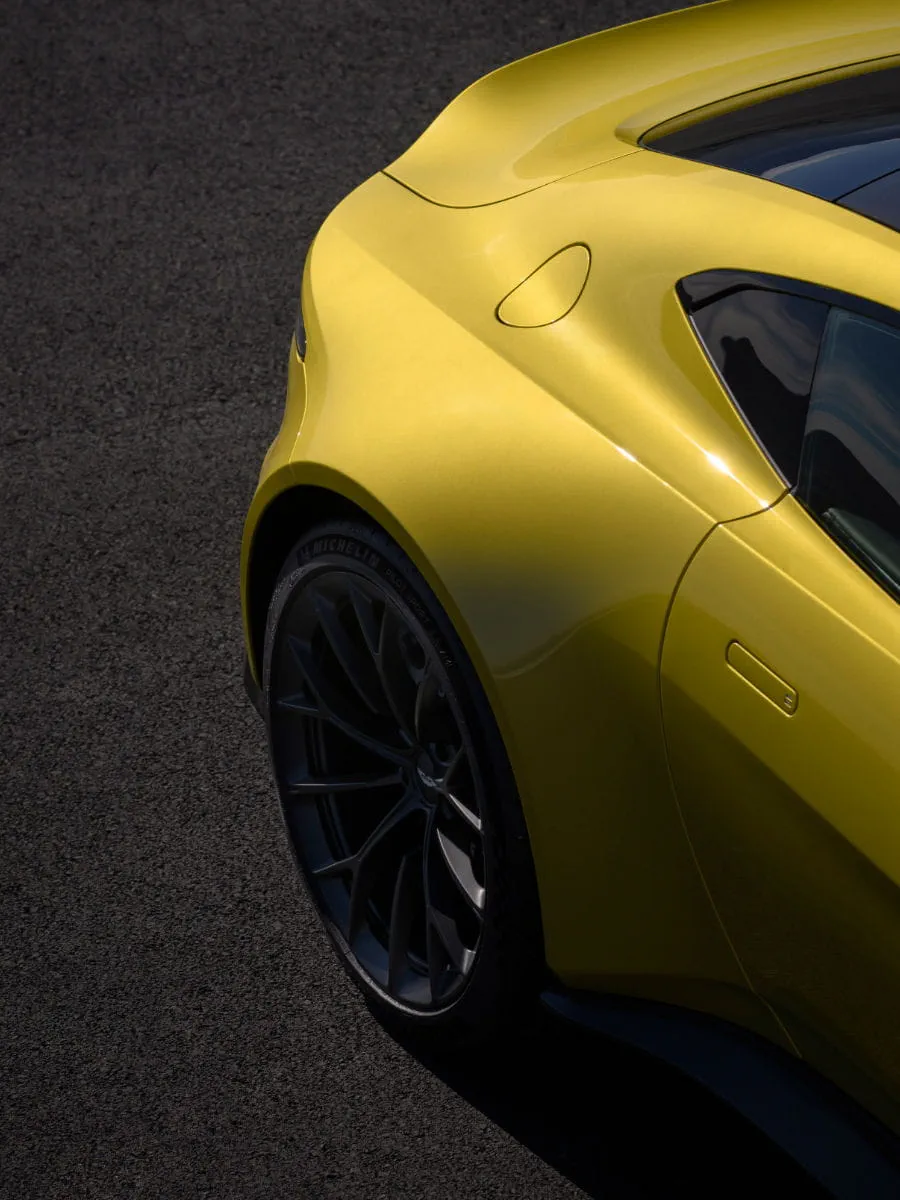 The largest single leap in power in the 73-year legend of Vantage. Launched from a hand-built twin-turbo V8. Heavily reworked. 800Nm thrusted through your tyres and trouncing the tarmac. Road reeling with 665PS. A 30% upswell compared to its direct predecessor. The most significant surge in the 7-decade timeline of the Vantage name.